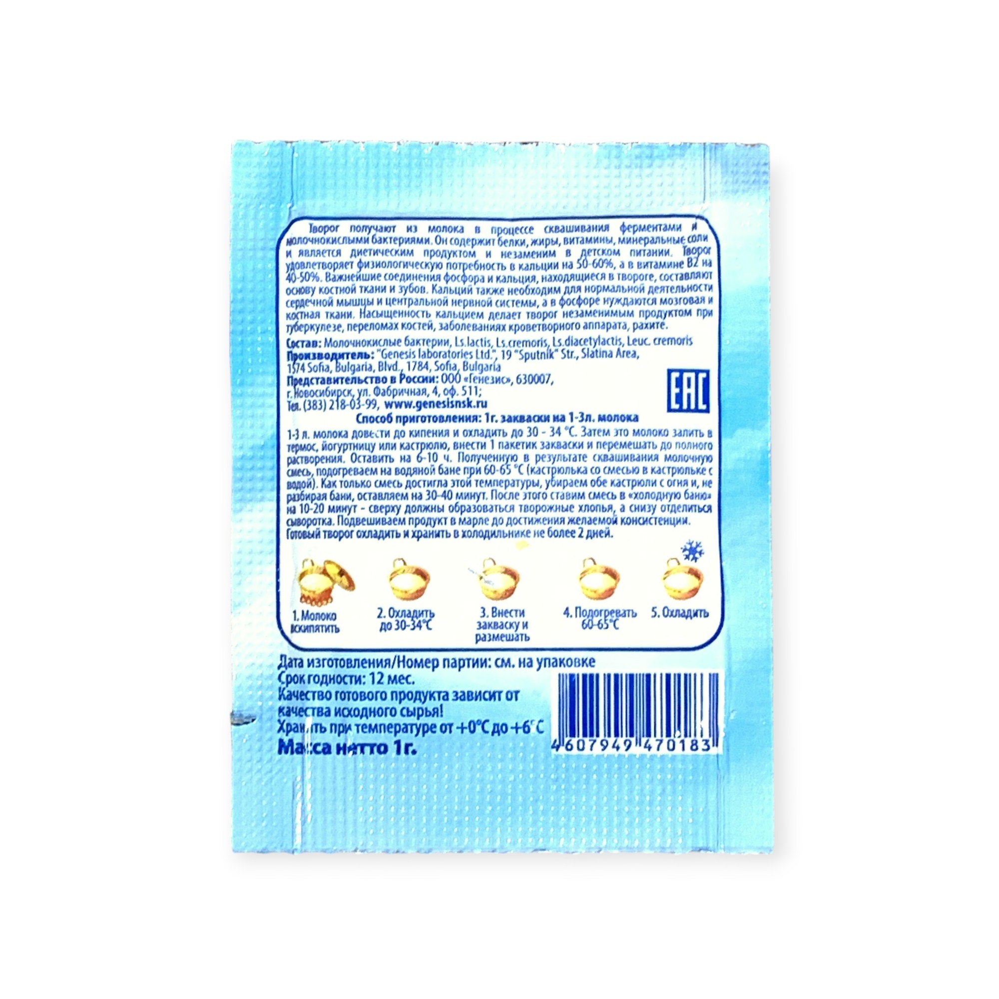 Закваска Творожок Genesis, 1 пакет от 100 руб. с доставкой. Пункт выдачи в Алатыре. Интернет магазин по сыроделию. Всё всегда в наличии.
